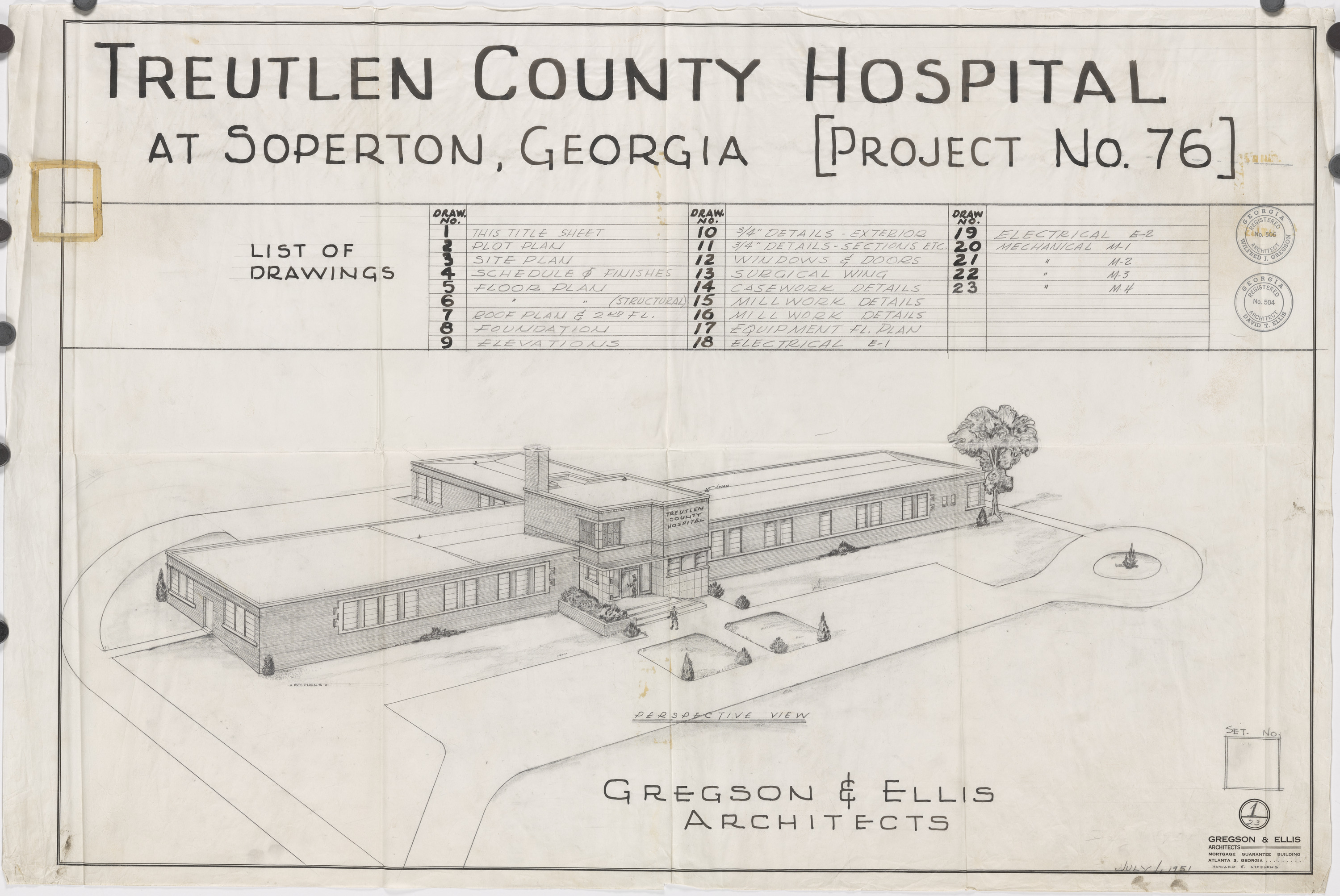 Treutlen County Hospital. [Cover sheet - list of drawings and perspective]
