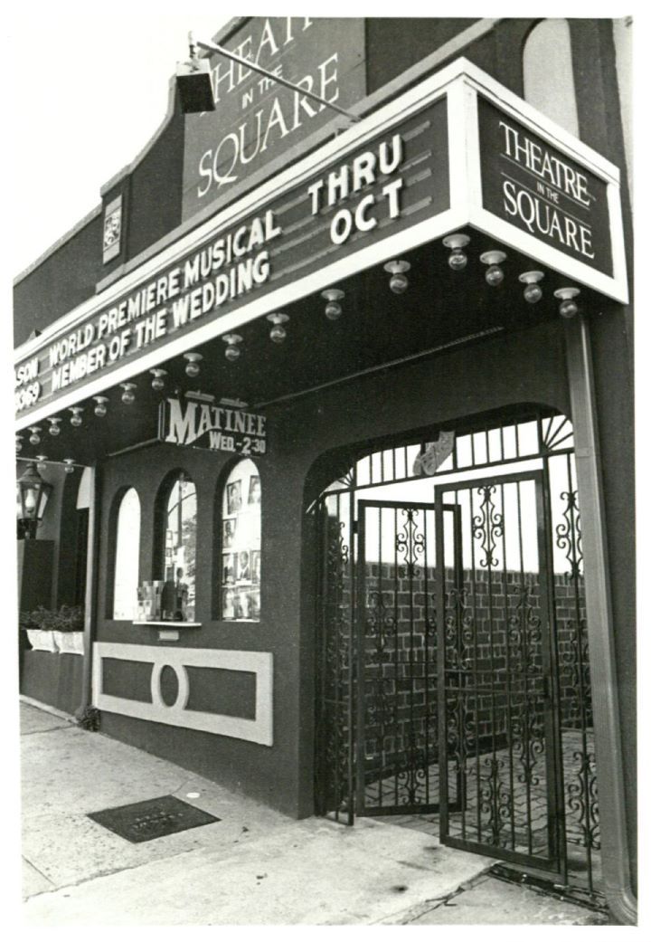 Theatre in the Square's front facade with the marquee for the theatrical production of Member of the Wedding (1993).