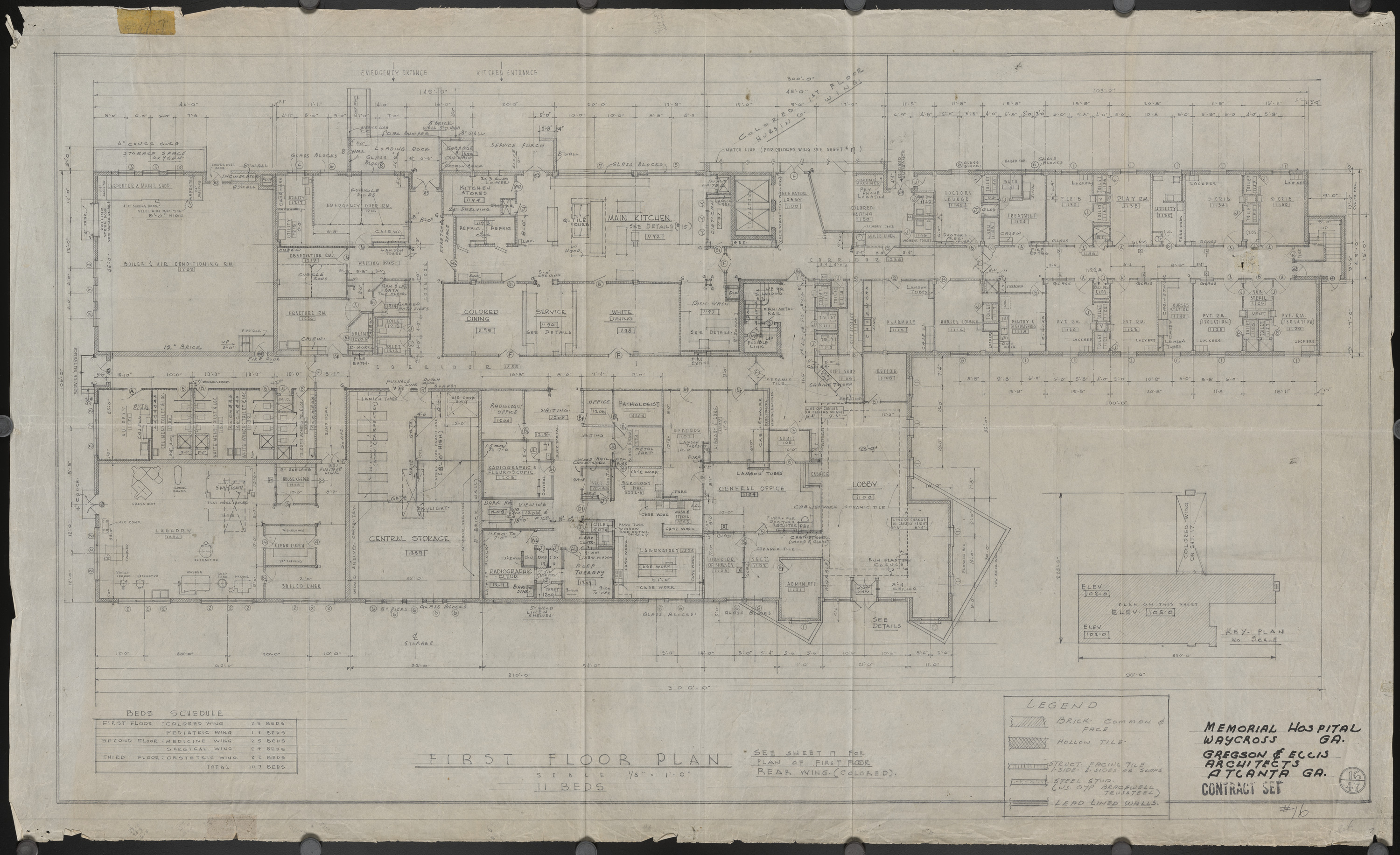 Memorial Hospital, Waycross, Georgia. First floor plan
