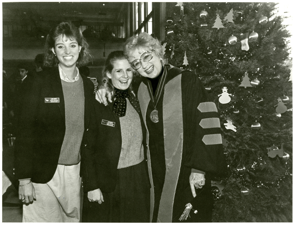 Betty L. Siegel and student ambassadors Lara Smith and Lois Beggs at December graduation, circa 1990s