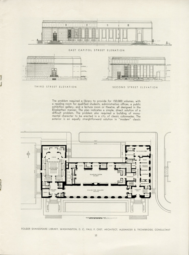 Detail sketch of various elevations of the Folger Shakespeare Library in the Washington, D.C.