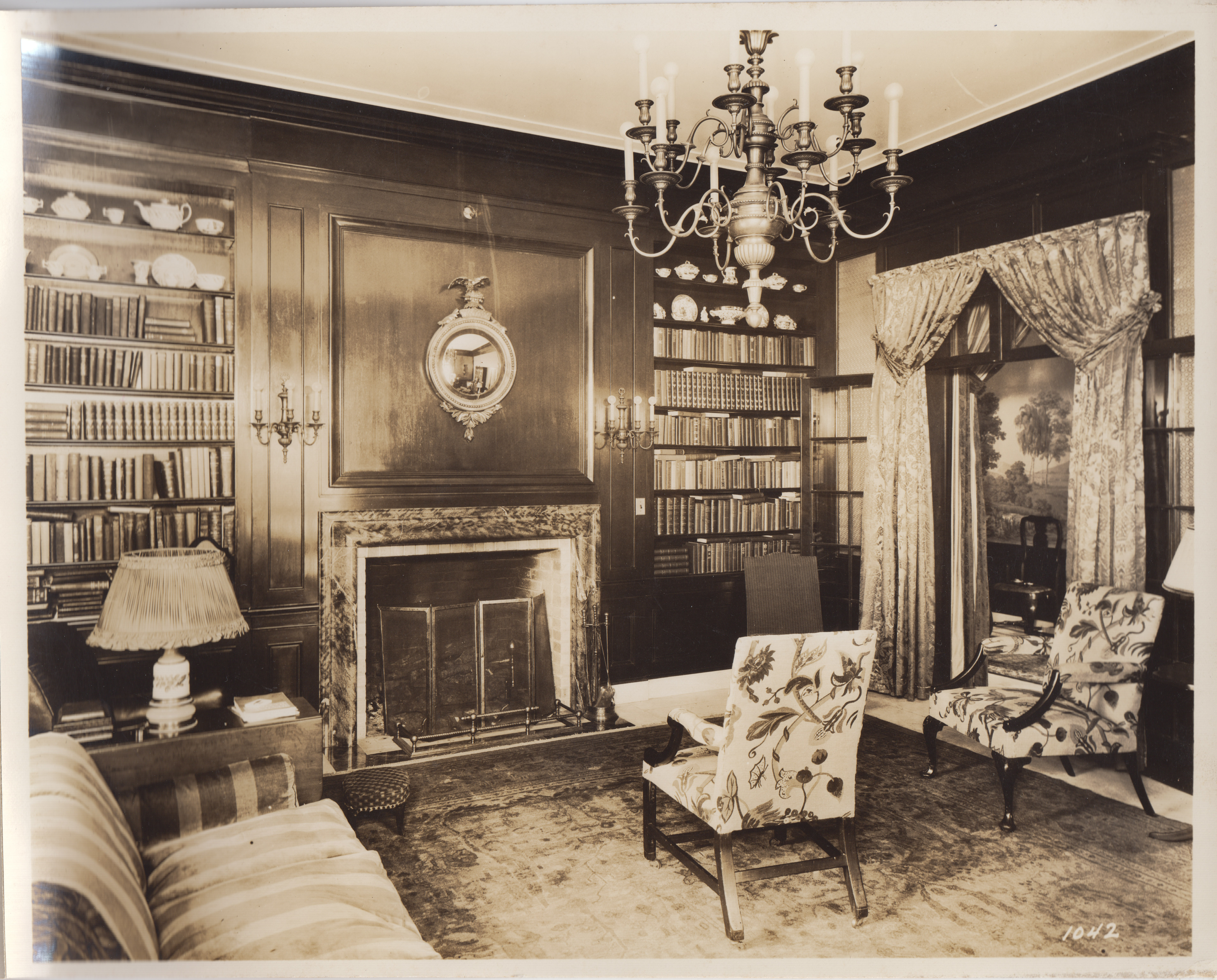Sam Tate House or the "Pink House" (study), completed in 1926 using Etowah pink marble quarried at the Georgia Marble Company south of the home, Tate, Georgia, ca. 1920s